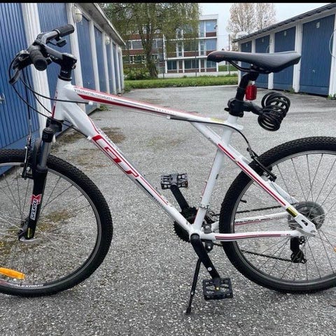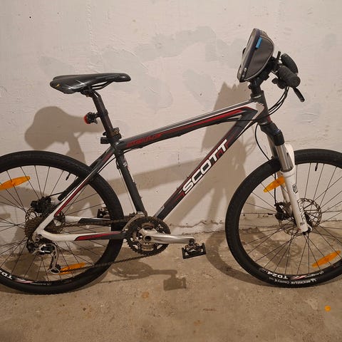 Nesten ny sykkel, aldri jeg brukt. Sykkelen har stått i boden min i et halvt år. Bremser og girkabler mangler. Selges som det skal.