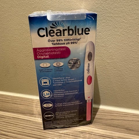 En uåpnet graviditetstest fra clearblue. Utløpsdato: 31.07.2027
