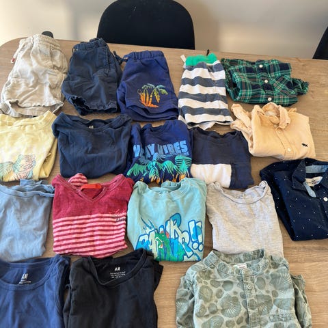 6 t-skjorter, 1 langermet body, 2 kortermet body og 2 skjorter med kort erme