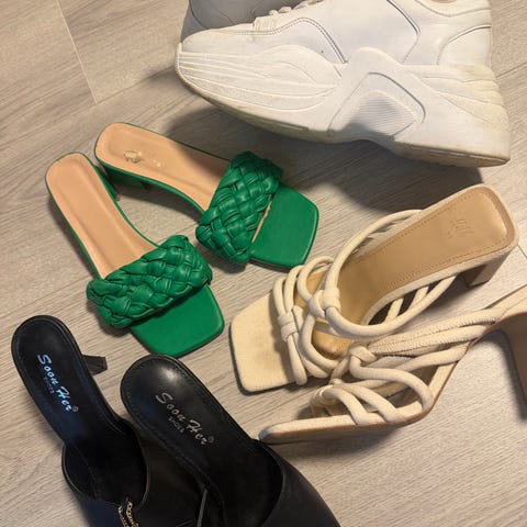 Skoene er nye og ubrukte, men det er tatt av lapp.