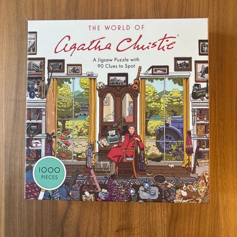The World of Hercule Poirot puslespill med 1000 biter. Puslespillet har et motiv som illustrerer scener og karakterer fra Hercule Poirot-universet.
