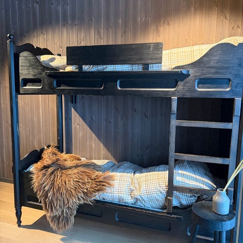 Pent brukt familiekøye til salgs med madrasser og en overmadrass til overkøye . Madrassmål: 90x200, 120x200