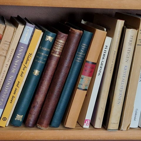 Samling av ulike bøker med forskjellige titler og forfattere. Inneholder blant annet 'Ta vare på mamma', 'Den tålte innsikt', 'Et lite verdensrike', 'Moped', 'Døden ga meg livet', og 'Heidi Løke'. Bøkene varierer i sjanger og tema.