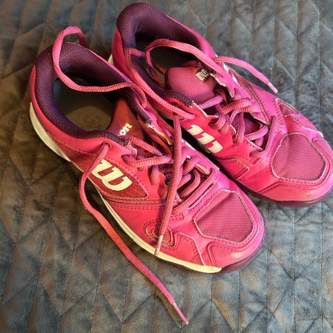 Skoene har en mesh-overdel for pusteevne og en solid yttersåle med mønster for grep på tennisbanen.