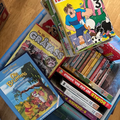Selger gode barnebøker som nesten er like fine som nye. Der det er omtale av bok på baksiden, følger bilde av dette på bildet etter forsiden.