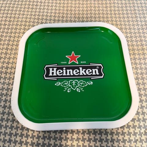 Uåpnet Heineken party sett, dvs. ballonger og vimpelrekke.