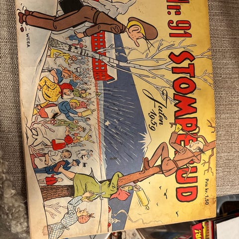 91 Stomperud tegneserie utgave fra våren 1959. Inneholder flere sider med illustrerte historier og tekst i norsk språk. Sendes som vanlig post (billigst)