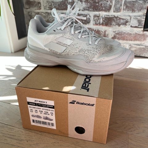 Skoene er designet for tennis med slitesterk yttersåle og god støtte.