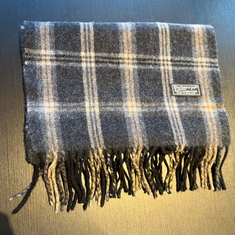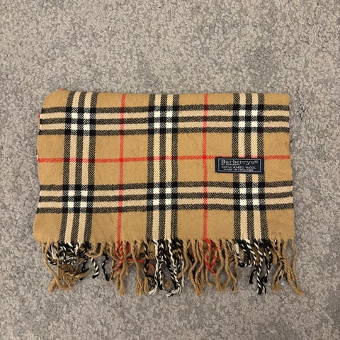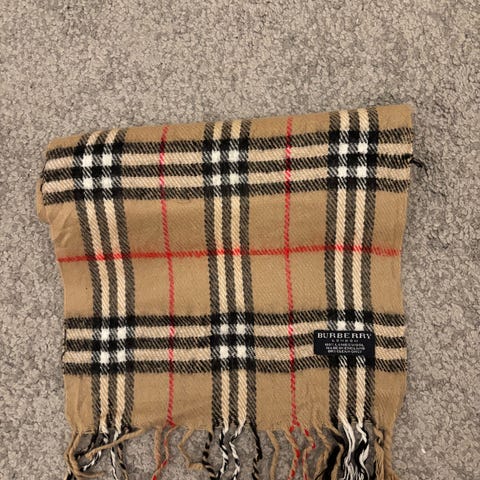 Selger et klassisk Burberry-skjerf i det ikoniske rutemønsteret.