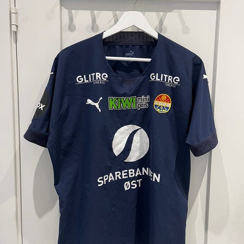 Puma Strømsgodset jakke i marineblå farge. Jakken har klubbens emblem på brystet og Puma-logo på motsatt side. Innsiden har meshfôr for ventilasjon. Jakken er egnet for utendørs bruk og har glidelås foran. Brukt som treningsjakke. Str S