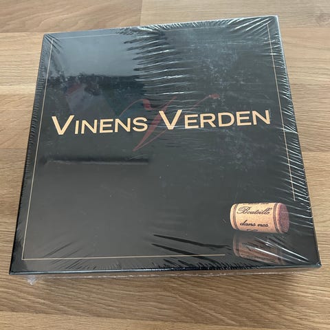 Vinens Verden Brettspill inkluderer et brett med vinregioner, spillbrikker, poengkort og en regelbok. Spillet har et tema knyttet til vin og vinregioner, og inneholder flere komponenter som brukes til spill og poengføring. Norsk språk.
