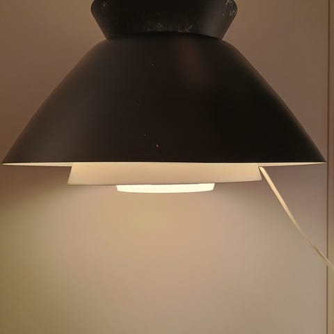 Denne er rå stilig industri taklampe fra Siemens. Ny mørke grønn tekstil ledning med takopp. Lampa er I god stand. Pris 2000kr. Må hentes på Byåsen. Sending I posten skjer på kjøpers eget ansvar. Kun seriøse henvendelser