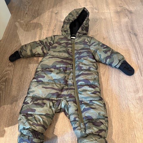 Varm og god utedress til baby. Kjøpt på KappAhl i nov/des. Brukt 3 ganger før baby vokste ut av den. Varmt og deilig foring og tryllefot og arm. Baby har vært så varm og god hver gang. Fremstår som ny.
