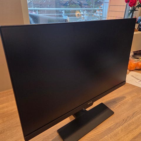Benq 24" skjerm med svart farge. Skjermen har standard tilkoblingsporter og en justerbar fot for plassering på skrivebord.