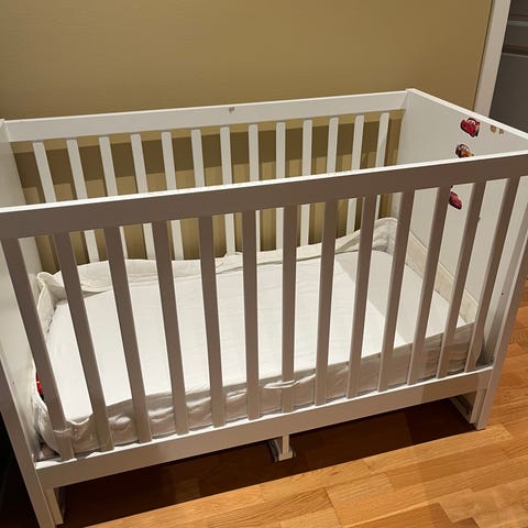 Gis bort mot henting som den er. God brukt. Med madrass. Vært noen uhell som har fått merker på madrassen