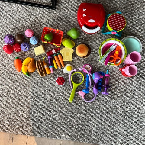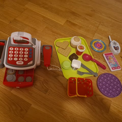 Matleker, handlevogn med mat og kassaapparat (mangler to deler men fungerer helt fint)
