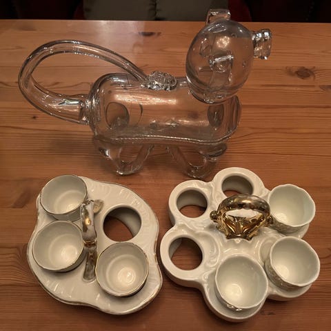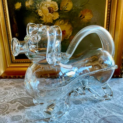 Mangler kork og har en liten skade i glasset på dekoren på siden(se bilde)
