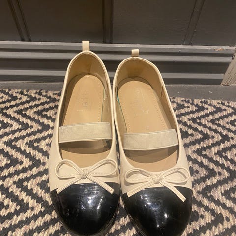 Barnesko for jente i størrelse 37. Skoene har en kombinasjon av lyserosa og svart farge. De har en lav hæl og en stropp over vristen for feste.