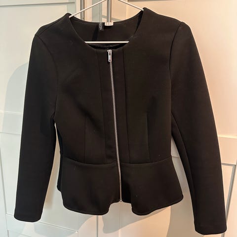 Ny sort dynejakke med Peplum. (Peplum er et slags vippeskjørt på den nedre halvdelen av jakka).