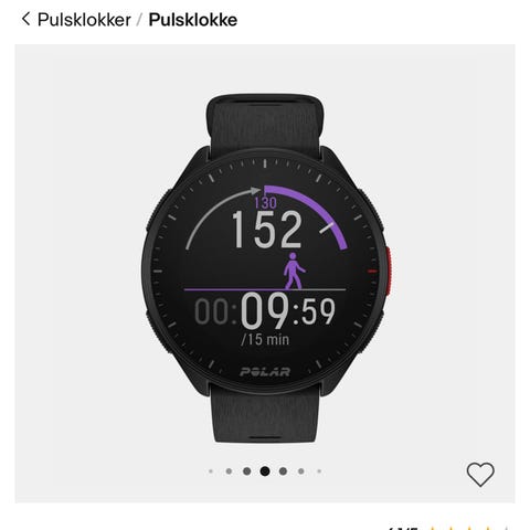 Skjerm med fargedisplay og flere sportsprofiler. Egnet for løping og annen trening.
