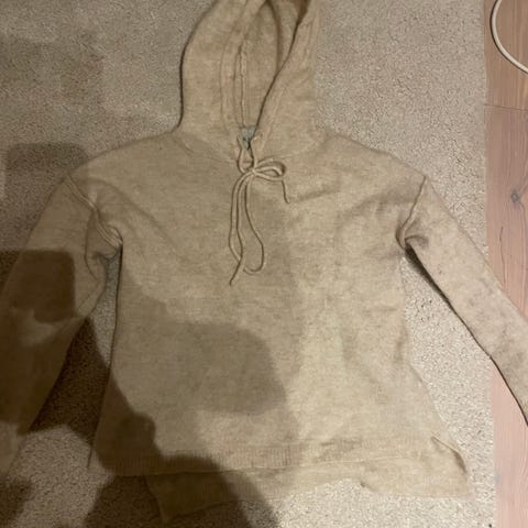 RAH Oslo hettegenser i størrelse M for dame. Genseren er laget av 50% mohairull og har en grønn farge. Modellen har hette og er designet for damebruk.