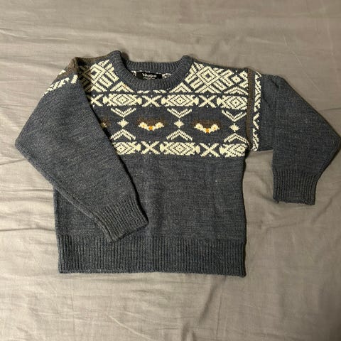 Ullgenser fra Vikafjell i størrelse 5 (år) selges. Genser er i farge blå og brun. Kan sendes. Jeg spanderer frakt.