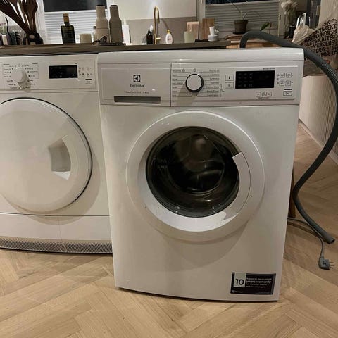 Selger vaskemaskin da jeg flytter, kjøpt i slutten av 2021 på Power. Alt fungerer som det skal, og den har ingen skader☺️