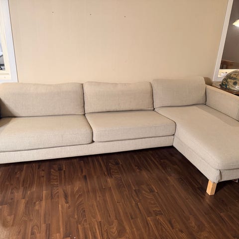Selger en lekker og stilren sofa fra Bubble-serien – en 3-seter sofa i beige med svarte ben. Sofaen ble kjøpt ny i 2024 og har stått i loftstue, brukt svært lite og fremstår derfor som ny. Selges grunnet flytting.