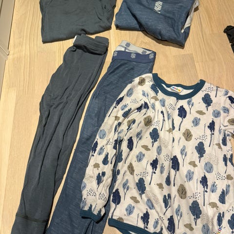 Ull/ fleece pakke til barnehage/ skolebruk. 4 stillongs, hvorav 1 fleece. 3 gensere og en trøye. Et fleece sett komplett. Noe flekker kan forekomme derav postet til barnehagebruk.