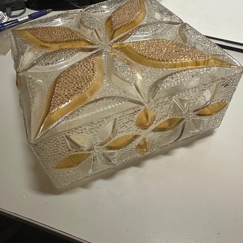 Kommer fra min bestemor. Hvorfor selve stålampen er borte, vet jeg ikke.