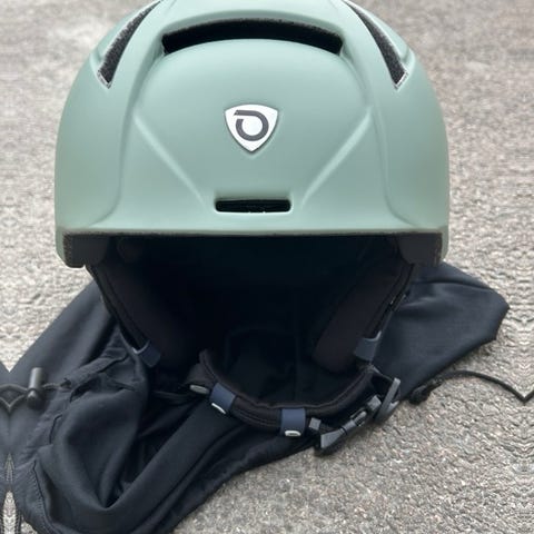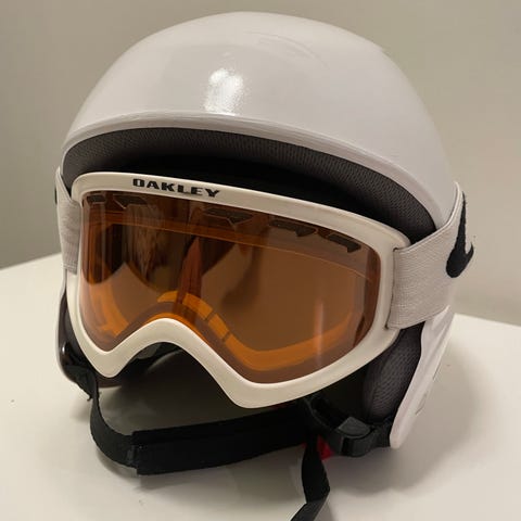 Briko ski hjelm i hvit farge med ventilasjonshull. Kommer med tilhørende Spy skibriller med blått og hvitt stroppbånd. Egnet for vintersportaktiviteter som alpint og snowboard. Brukt en vinter sessong.