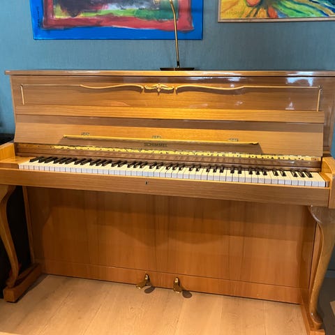 Selger et flott Schimmel 112, et av de mest anerkjente kompakte pianoene fra Tyskland. Modellen er kjent for sin solide byggekvalitet, Renner‑mekanikk og en overraskende fyldig klang til å være 112 cm høyt. Dette er et instrument som passer både nybegynnere og viderekomne som ønsker et piano med varm tone, god respons og lang levetid. Inkludert orginal pianostol med skinntrekk i samme design som pianoet.