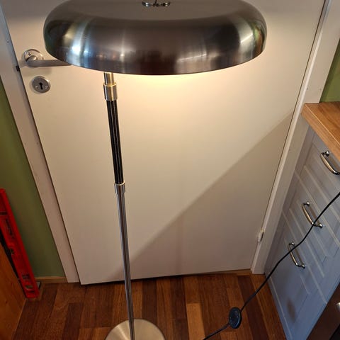 Stilig retro tivoli stålampe. En av lysbryter virker ikke må byttes. Ellers er lampa I pen stand. 3 stk nyere røde skjermer følger med. Pris 1200kr må hentes på Byåsen. Kun seriøse henvendelser