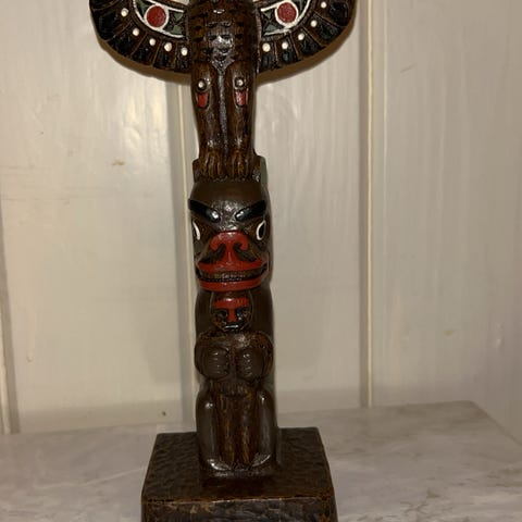 Dekorativt horn med metallkant og liten fot. Fremstår som håndlaget.