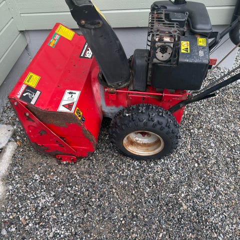 Solid snøfreser fra 80 tallet. Gått over samt fått ny kilerem til utkast. Store gode hjul som gjør at det skal mere til før den setter seg fast. Kan være behjelpelig med transport.