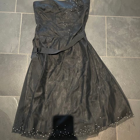 Elegant svart ballkjole fra InWear i størrelse large. Kjolen har justerbare stropper som gir god tilpasning og komfort, samt et tidløst og sofistikert uttrykk. Pent brukt og i god stand.