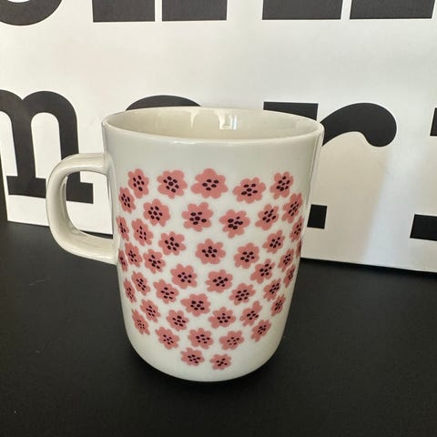 Marimekko kopp Oiva Räsymatto i svart og brun. I god stand uten bruksmerker.