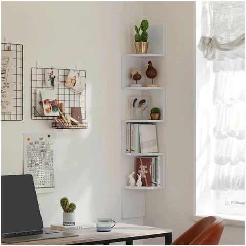 Designet for å stå i hjørne og utnytter plassen svært godt. Perfekt til bøker, planter, pynt, lys eller dekor.