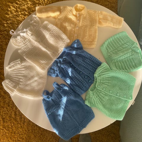6 strikkede bomullsplagg.