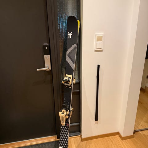 Skiene er brukt en og en halv sesong, og er i god stand. Har en del merker etter kjøring i park.