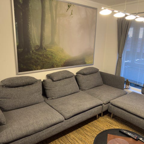 Vi flytter og får ikke med oss sofaen. Pris kan diskuteres. Må hentes før 1. februar. Slitasje fra katt som liker å klore på hjørnene. Fremdeles god å sitte i:)