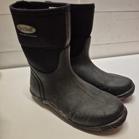 Dock Boot allværsstøvler er laget i neopren (CR skum), et vanntett materiale som brukes blant annet i dykkerdrakter. Støvelen er isolerende med 5mm tykk neopren, som sørger for komfort fra -15°C til +15°C, og den kan dermed brukes hele året. Yttersålen er av ekte gummi, og vil være bøyelig også i sterk kulde. Enkel å ta av og på. Med forsterkning på hæl og tå, 6 mm EVA innersåle og syre- og oljebestandig yttersåle. Alle Dock Boots er testet med trykkluft under vann for kontroll av tetthet. Annbefaler tynne ullsokker i plussgrader og tykke ved kulde, siden neopren ikke opptar fuktighet (for svette eller kondens).