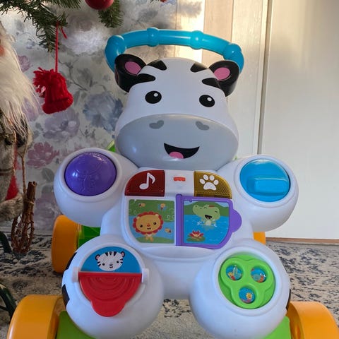 Fisher-Price gåvogn med aktivitetsleker i fargerik design. Gåvognen har et håndtak for støtte og flere interaktive elementer som knapper med lyd, roterende deler og fargerike bilder. Egnet for små barn som lærer å gå og utforske sanser gjennom lek.