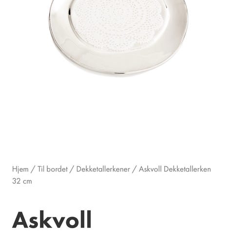 6 stk dekktallerkner fra Askvoll Brug selges -32 cm-for 1000 kr pr stk.