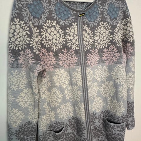 Lite brukt/ingen bruksspor. 75 prosent merinoull, 25 prosent silke.