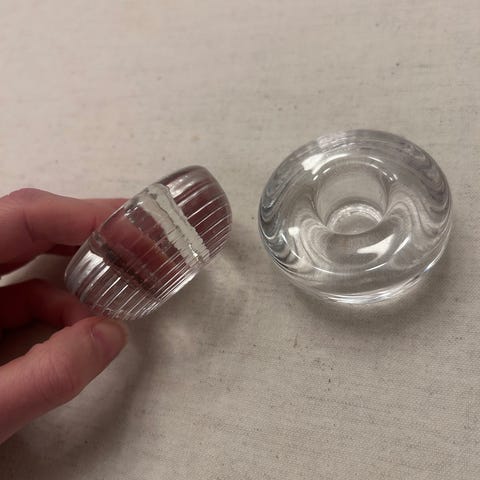 Iittala lysestaker i klart glass selges samlet for 200 kr.