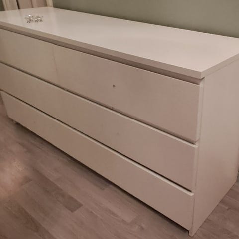 Nattbord/Kommode med 2 skuffer fra Ikea. Har noe bruksmerker/skraper, men fungerer som den skal. Fargen er brunsvart.