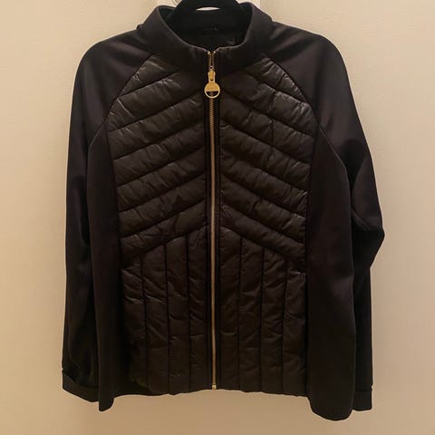 Flott ytterjakke som er lite brukt, ser veldig fin ut og har ingen bruksmerker. Den er mørk blå, og det følger hette med. Str 18(UK), 44(Euro).
