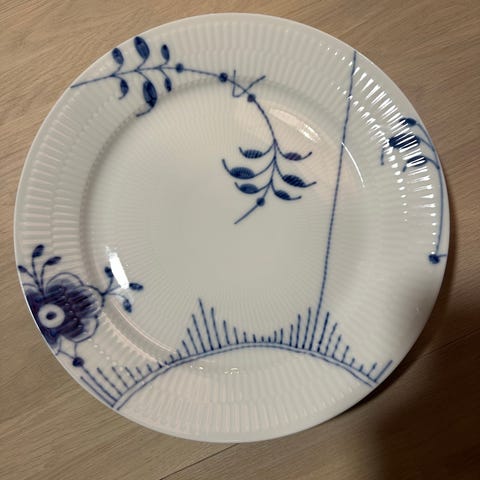 Royal Copenhagen Blå Mega Riflet tallerken 27 cm med dekor nr. 6