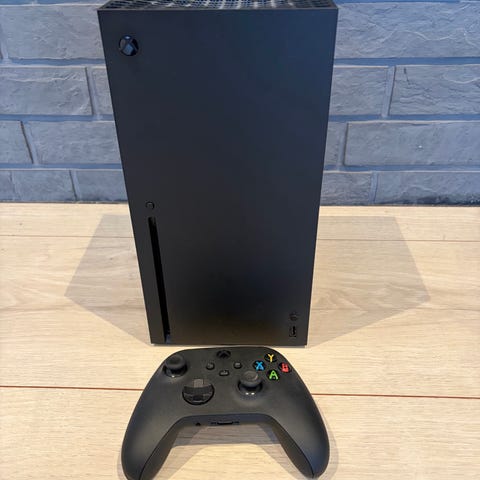 Microsoft Xbox Series X spillkonsoll med høy ytelse og avansert grafikk. Designet for å gi en forbedret spillopplevelse med rask lastetid og støtte for 120hz, 4K-oppløsning HDR og VRR.